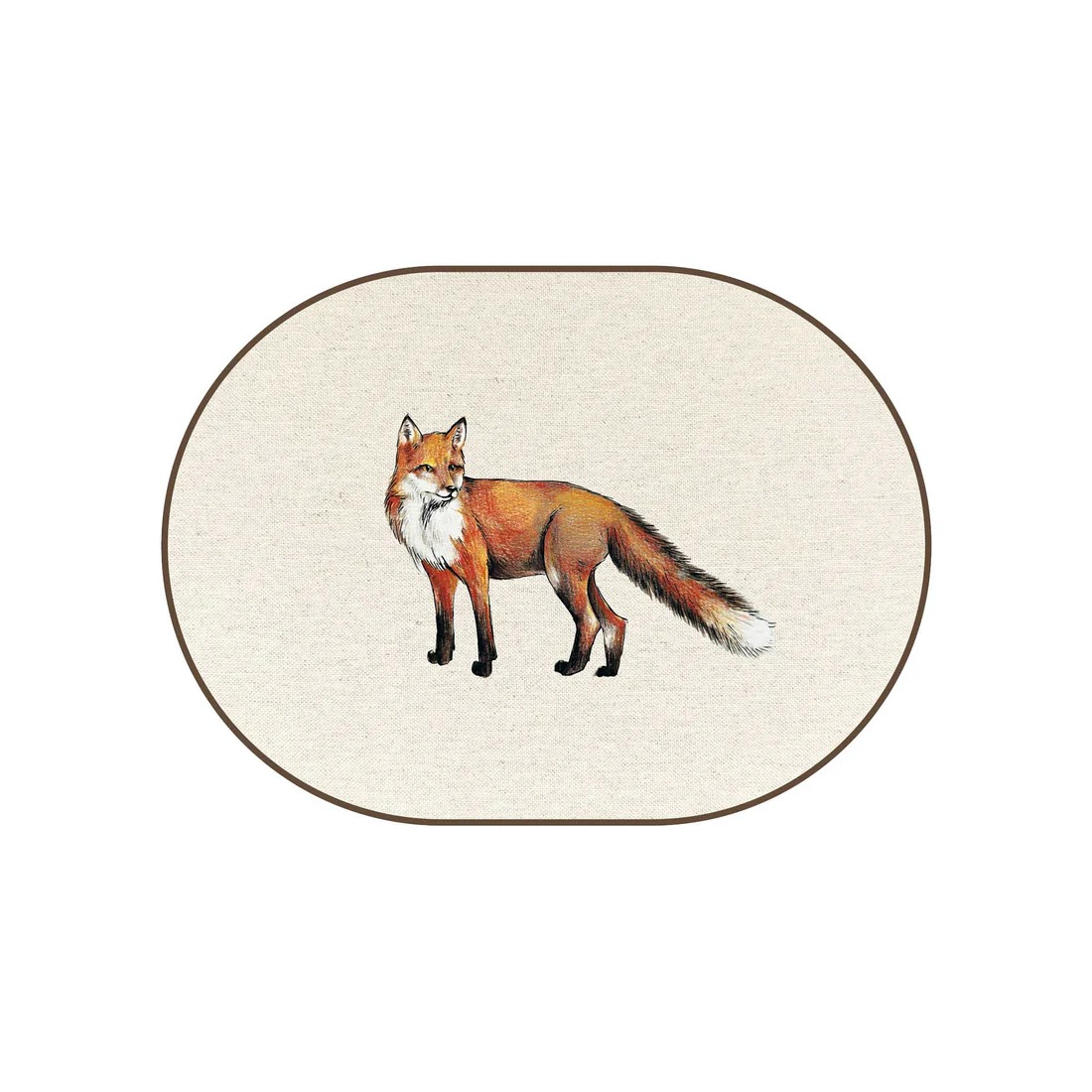 Placemat made of wood fiber, natural cork, cotton fabric printed in two colors with contrasting border. You can choose from the four color backgrounds yellow/green, green/yellow, pink/yellow, light blue/pink.